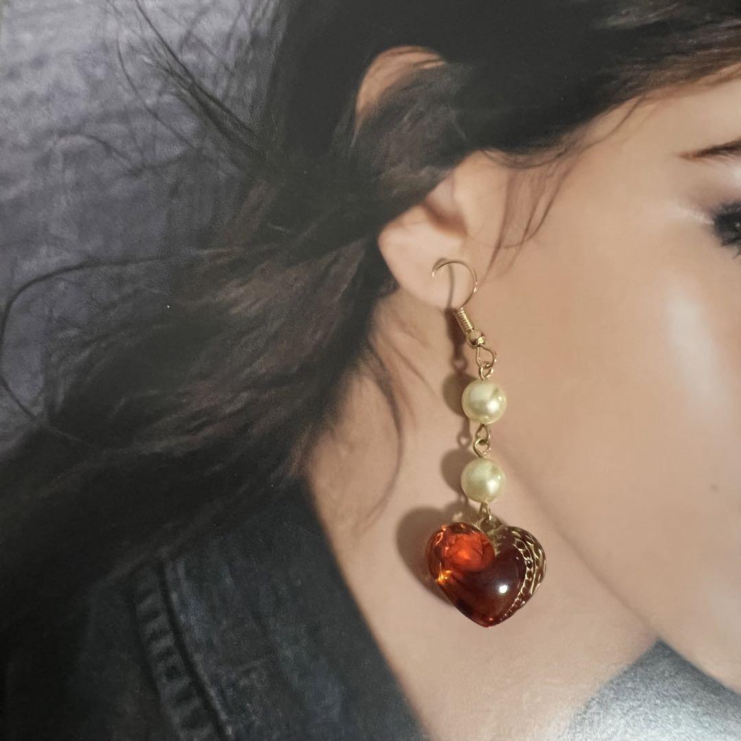 カラメルハートの艶が可愛いピアスorイヤリングです。